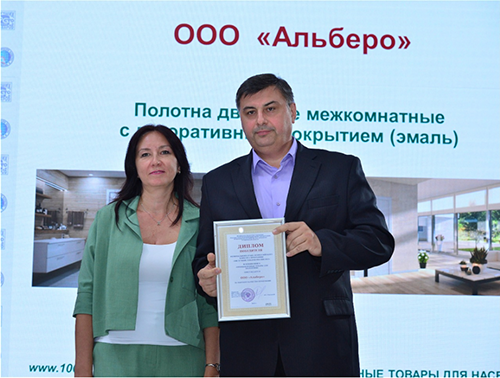 Продукция, получившая признание «100 лучших товаров России», — это гарантия высокого качества, безопасности и надежности для граждан. Это очередное подтверждение безусловного успеха и лидерства фабрики Альберо на рынке межкомнатных дверей.